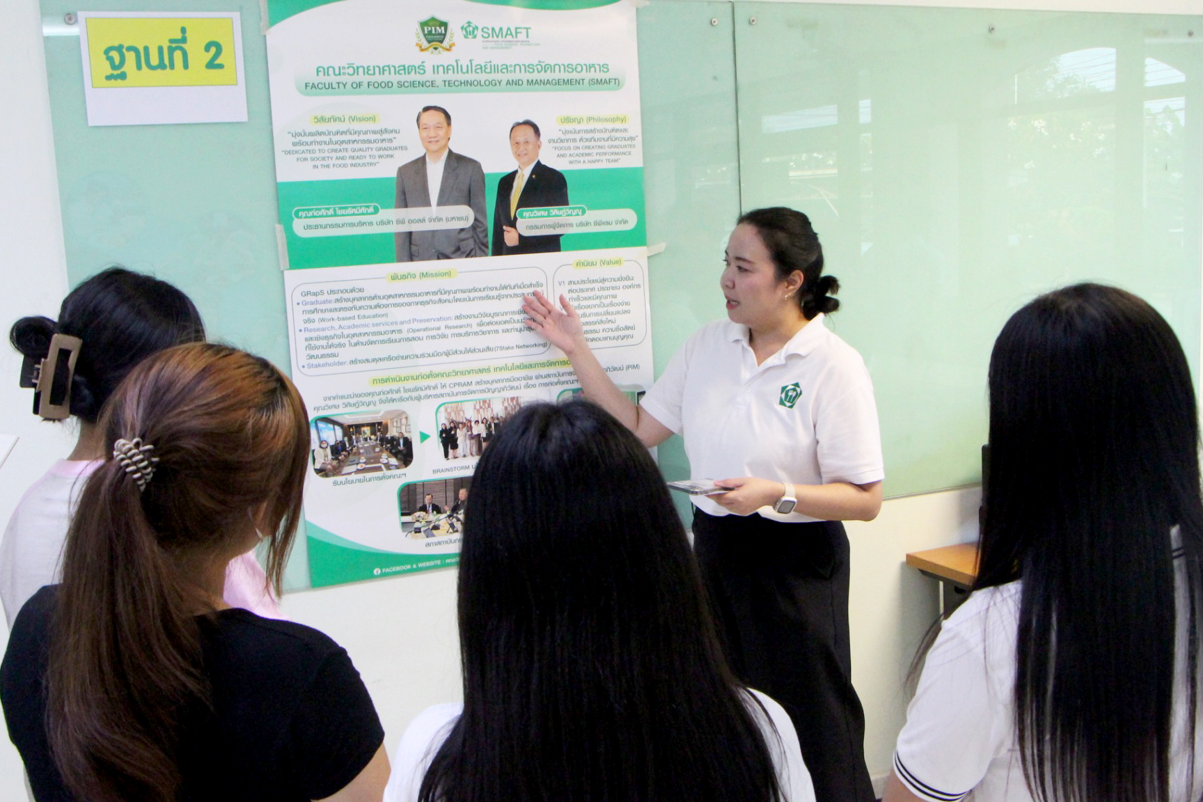 ในงานนี้คณะฯ ได้พาน้องๆ มารู้จักกับคณะวิทยาศาสตร์ เทคโนโลยีและการจัดการอาหาร (SMAFT) สถาบันการจัดการปัญญาภิวัฒน์ (PIM) ทั้งด้านหลักสูตร การเรียนการสอน ทุนการศึกษา กิจกรรมในมหาวิทยาลัย โอกาสทางอาชีพหลังจบการศึกษา และความก้าวหน้าในอาชีพ รวมถึงรู้จักกับบริษัทคู่ความร่วมมือของคณะฯ โดยผู้เข้าร่วมจะได้เรียนรู้ ผ่านกิจกรรม “SMAFT Rally” โดยมีอาจารย์ และบุคลากรของคณะฯ ประจำในแต่ละฐาน เพื่อให้น้องๆ ได้ทราบข้อมูลต่างๆ เกี่ยวกับคณะฯ อย่างชัดเจนและครบถ้วน